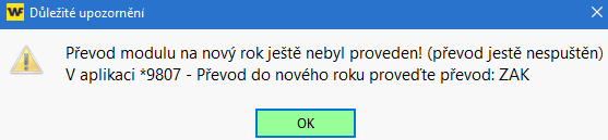 • Při práci se zakázkami ve starém roce budete upozorněni, že modul už byl převeden do nového roku.