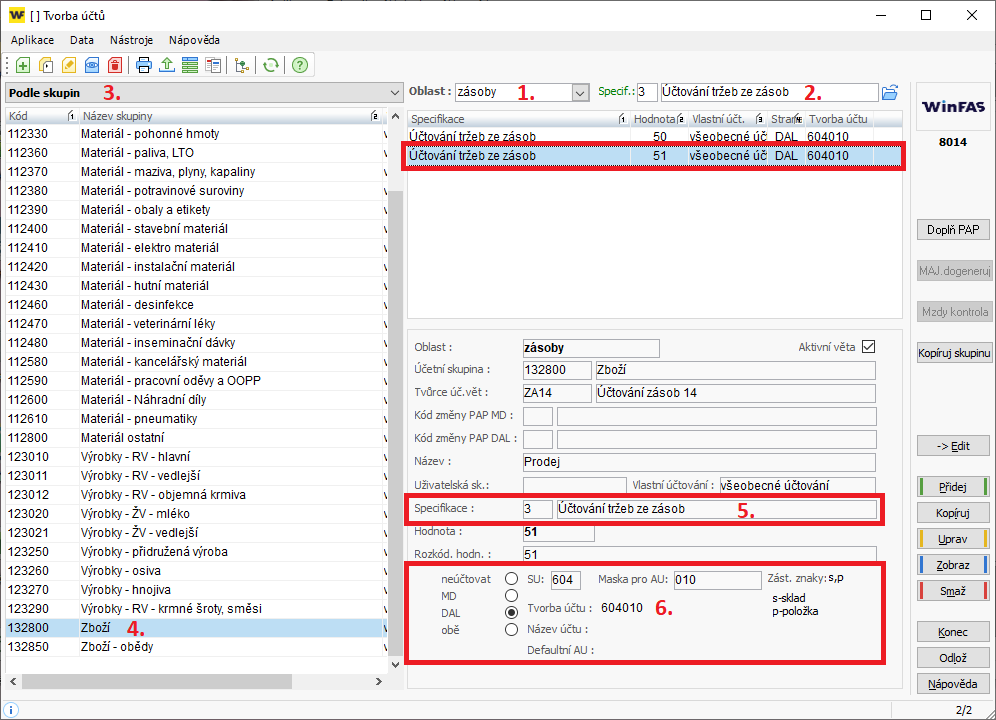 - Vyberte účetní skupinu pro nastavení účtování tržeb ze zásob (3.).