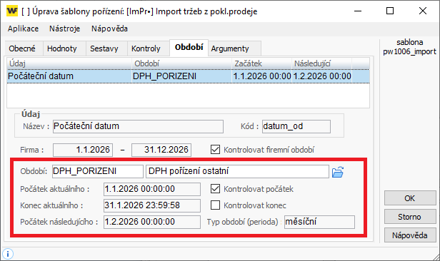 - Pokud se nastaví tato kontrola, bude se při importu hlídat uzávěrka období.