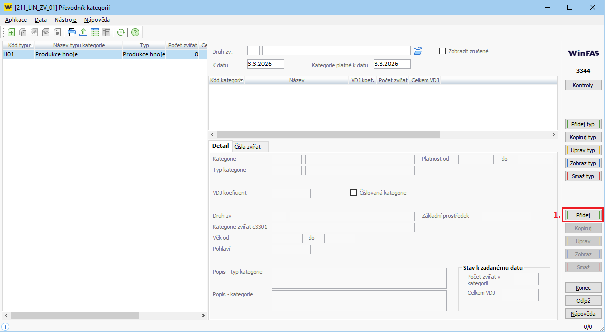 - 1. V aplikaci Převodník kategorií *3344 klikněte na tlačítko Přidej.