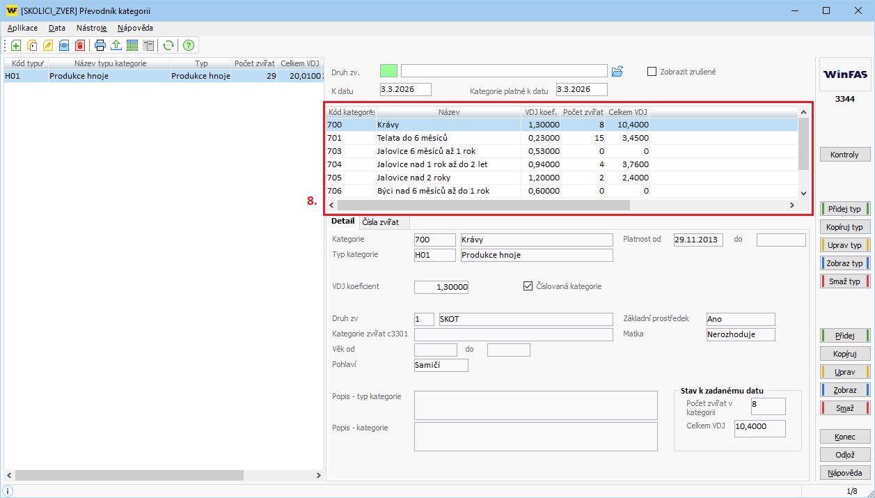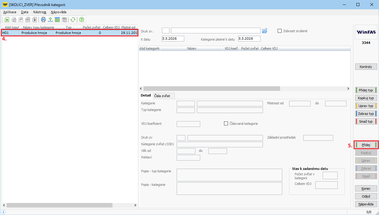 - 4. K zadanému typu je poté třeba přiřadit kategorie zvířat, u kterých se má provádět přepočet dobytčích jednotek.