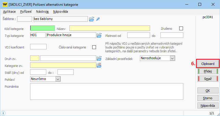 - 6. V okně Pořížení alternativní kategorie klikněte na tlačítko Clipboard.