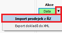 - V pravé horní části aplikace stiskněte šipku u tlačítka Data a vyberte možnost Import prodejek z ŘZ.