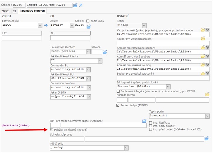 - v aplikaci *217 Import dokladů ISDOC je nutné nastavit import položek: