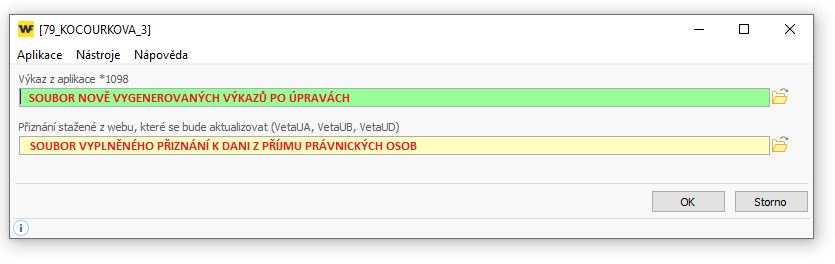Aktualizace údajů výkazu Rozvahy a Výkazu Zisku a Ztráty v již uloženém vyplněném xml souboru z portálu moje daně.