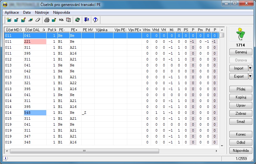 • Seznam transakcí s chybnou pentální rovnicí = chyba