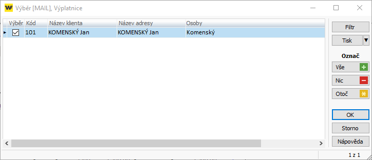 - V dalším kroku můžete některé osoby vyřadit z odesílání (odstraněním zatržítka). Potvrďte tlačítkem OK. Pro tisk zůstanou pouze neodeslané výplatní listiny.