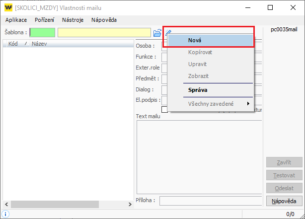 Nástroje / Centrální nastavení / Email - Pokud používáte e-mail pouze přes webový prohlížeč (např. seznam.cz, post.cz, email.cz), odesílání výplatních listin nebude funkční.