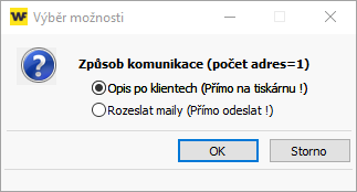 - Následně zvolte možnost Opis po klientech (Přímo na tiskárnu) a potvrďte OK.