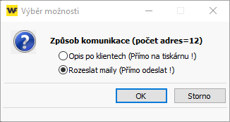 - Ve výběru možností zvolte Rozeslat maily a potvrďte tlačítkem OK.
