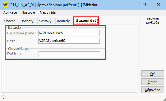 - Poté na záložce "Stažení dat" uložte přihlašovací údaje.