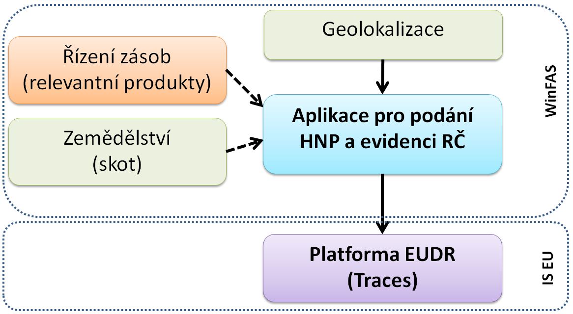 Užití WinFASu pro účely EUDR je zjednodušeně vyobrazeno v následujícím schématu: