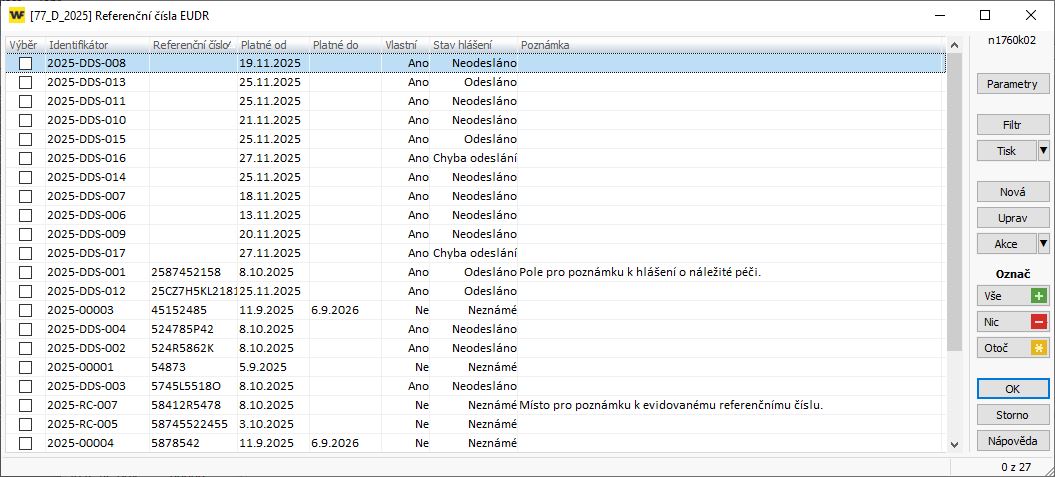 V aplikaci *1642 Evidence referenčních čísel EUDR pořídíte pod tlačítkem Přidej - volba Nové hlášení.