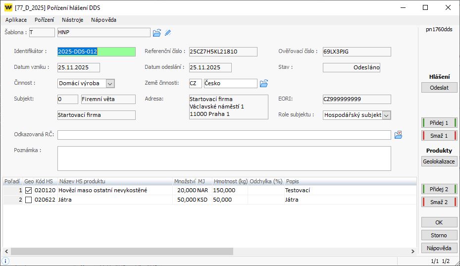 Rozpracované můžete uložit pomocí tlačítka OK, anebo rovnou provést HNP do systému EU prostřednictvím tlačítka Odeslat. V případě, kdy dojde ke schválení vašeho HNP stran EU, obdržíte Referenční a Ověřovací číslo, které se propíše do příslušných údajů ve WF. Jakmile tuto deklaraci budet mít dostupnou, můžete začít s produkty obchodovat a RČ i OČ předávat vašim odběratelům.