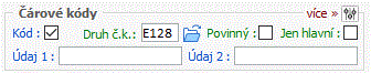 - Na záložce Speciality v sekci čárové kódy zvolte i údaj pro ČK a druh, který se má na štítky tisknout: