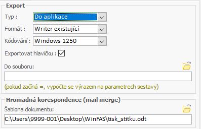 - V sekci "Do souboru" vyberte formát Writer - nový