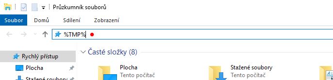 - V Průzkumníkovi souborů zadejte do cesty údaj %TMP% (temp uživatele), který otevře uživatelský temp