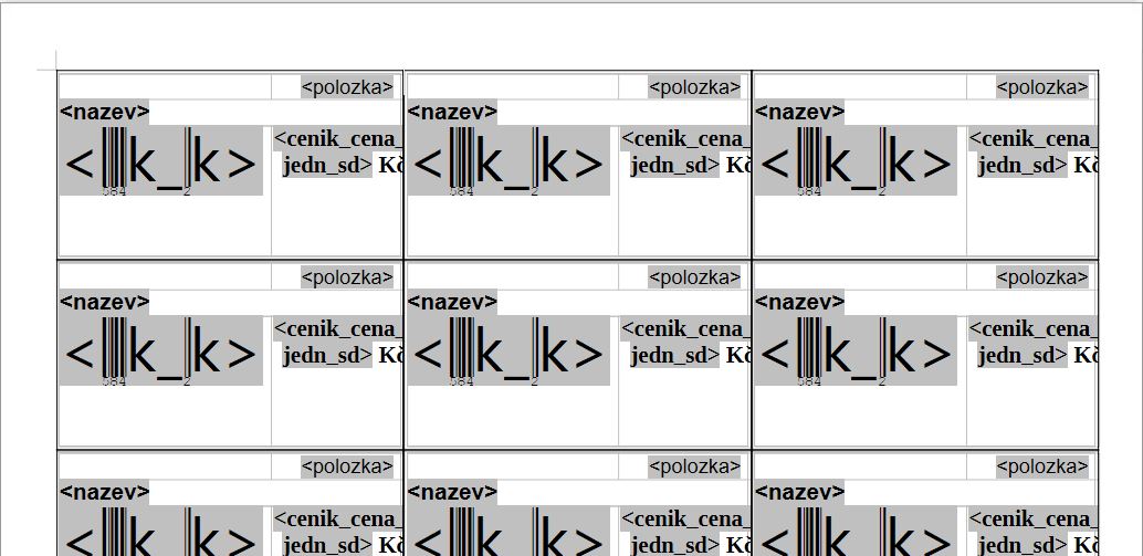 - Navíc je třeba pro tisk štítků v šabloně nastavit:
